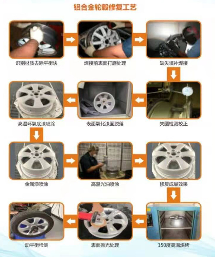 輪轂表面翻新。若只能修復(fù)輪轂形狀,而無法翻新輪轂表面,那輪轂修復(fù)也失去修復(fù)的意義。汽車鋁合金輪轂表面可以分為四大類,即:噴漆面,拋光面,數(shù)控(CNC)面與電鍍面。我司能提供處理鋁合金輪轂表面拋光,電鍍銀等技術(shù)、工藝與材料;并能處理CNC表面等問題。翻新后的輪轂表面,無論是在外觀上,硬度上都能達(dá)到OEM品質(zhì)要求。
