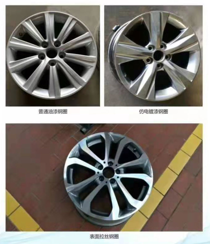 鍍鉻的鋼圈不能修復(fù)(如克萊斯勒300C的電鍍鋼圈不能修復(fù)),胎鈴嚴(yán)重變形,缺失過多不可修復(fù),其它外表面損傷,鋼圈邊緣小部分缺失或變形均可修復(fù)。